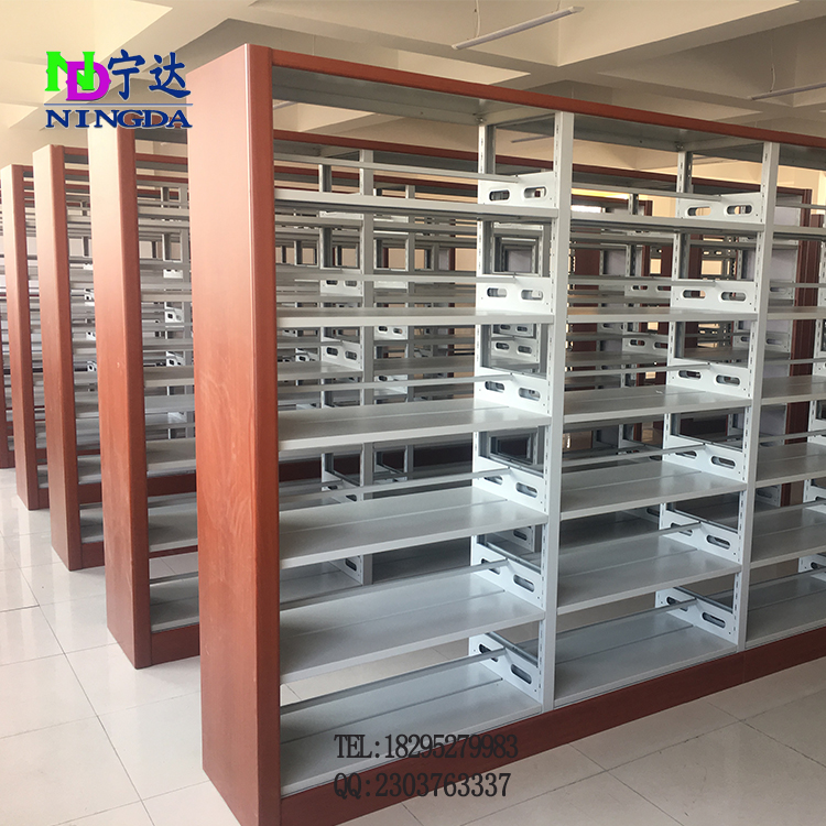 通常書架分為單面書架,雙面書架。書架根據框架可以無限連接。學校的圖書書架一般都是分為6層,當然根據情況也可以4層 5層 ,常規的規格每個框架是900-1000的寬度,單面書架250-350深度,高度在2000mm左右。書架的結搆和功能:
