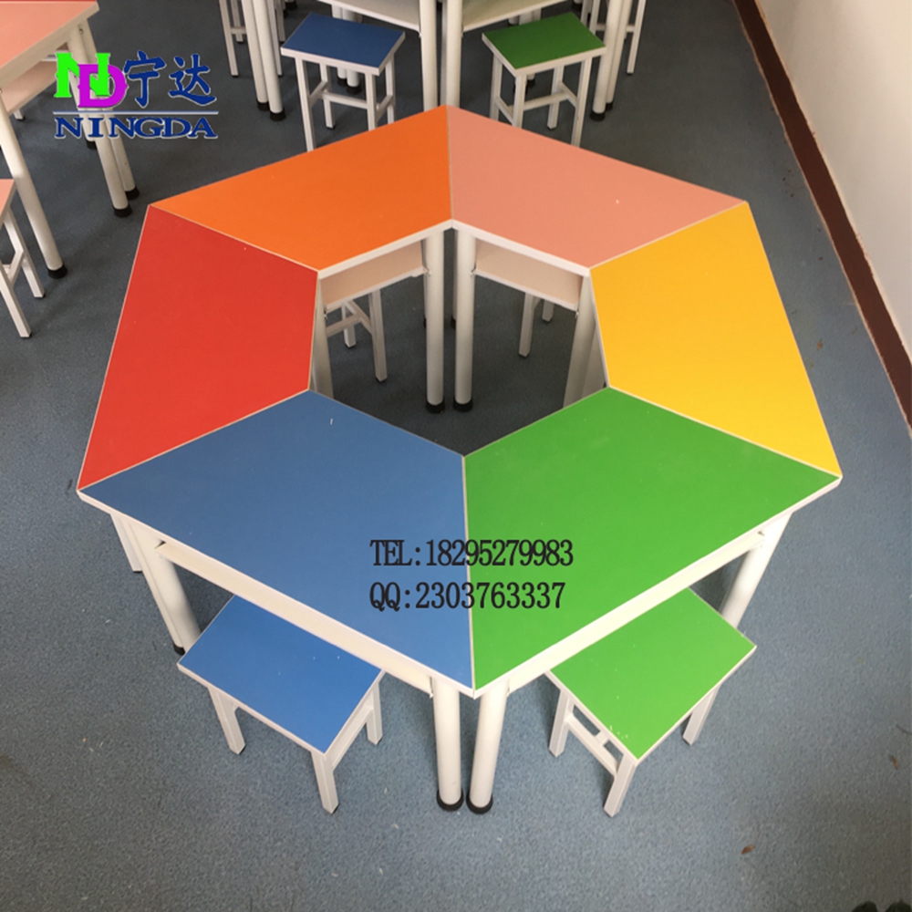 桌面材質:桌面采用7層(或7層以上)普通膠合板,表面用木紋貼面防火板或三聚氰胺板。課桌面板四個角適當倒圓角.