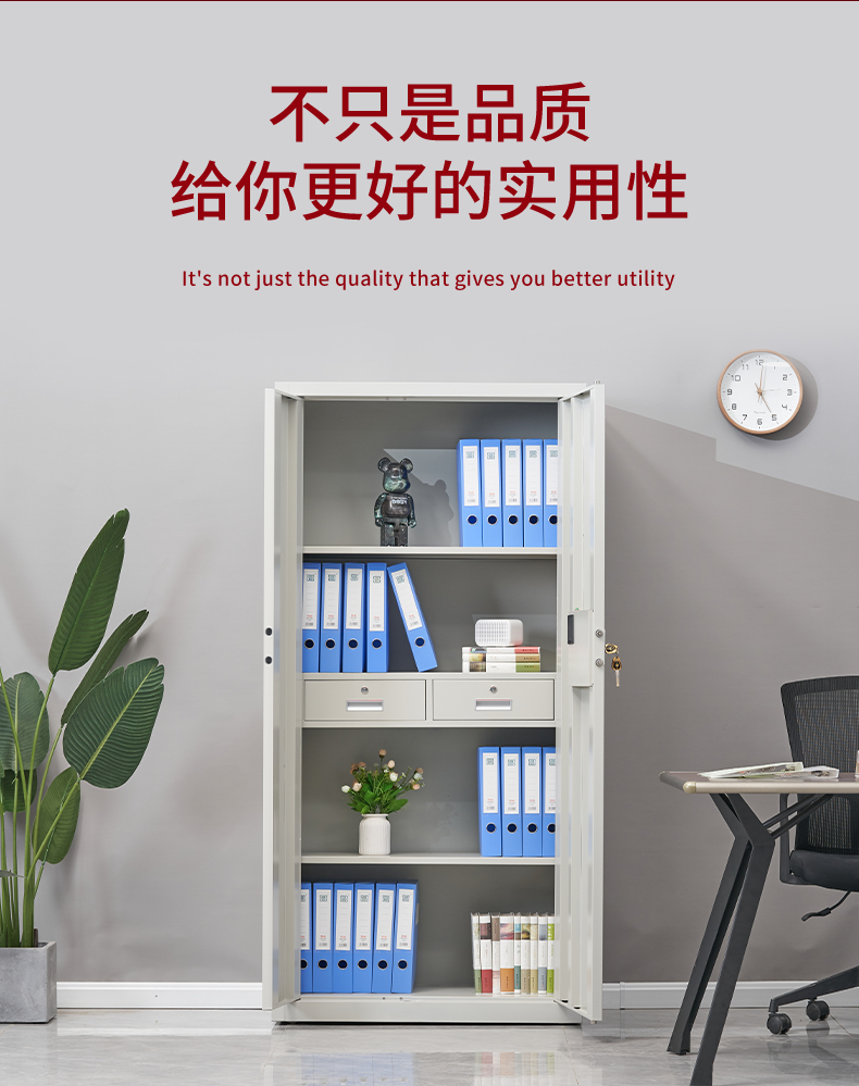 3.隔板:文件柜格板高度可調,堅固耐用,性能優良,可存放大量書籍不變形。